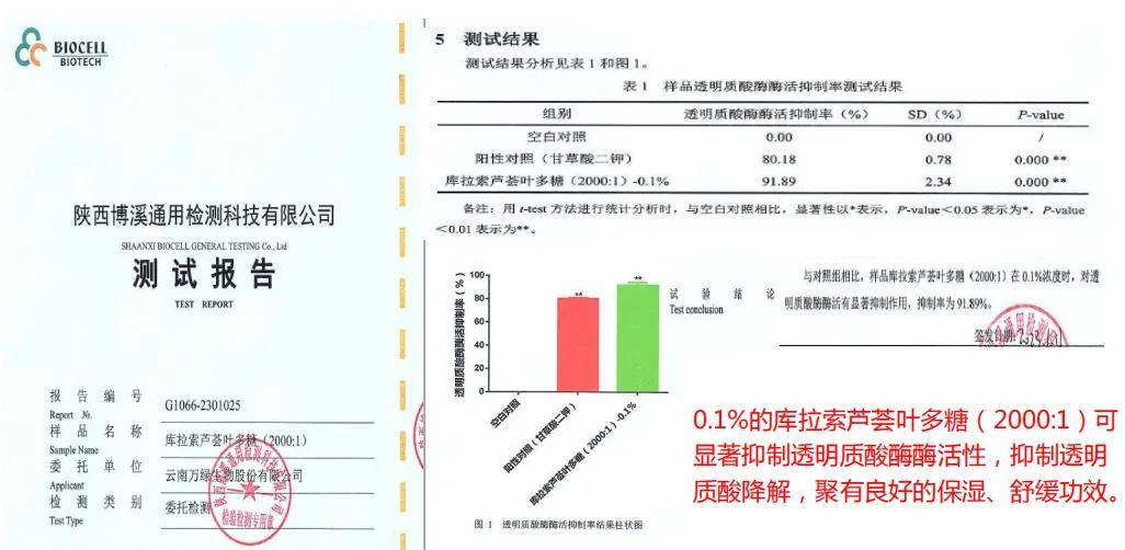 舒缓相关:在实验模型中,一定浓度的该原料对透明质酸酶表现出抑制作用。